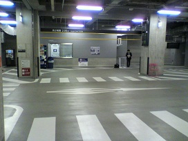地下鉄駅前広場より東京スクエアガーデン内に入りエレベーターで駐車場地下2階へ