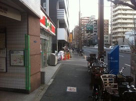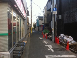 ② コンビニの前を道なりに進む。