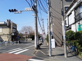 ② 1km程進み、「関野橋交差点」を左へ曲がります。