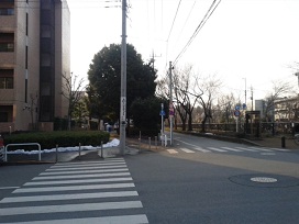 ① 北口を出て左へ進み、1つ目の交差点を右へ曲がります。