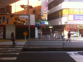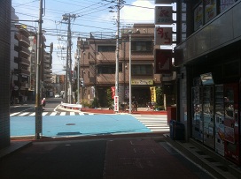 ① 北口を出て左へ進み、高架下の信号を渡り、右側すぐの路地を直進します。