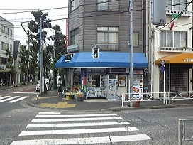 ② 信号機のある横断歩道を渡り、たばこ屋を右方向へ。