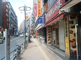 ① 「早稲田口」を出て、「早稲田通り」を左側(落合駅方面)へ進みます。