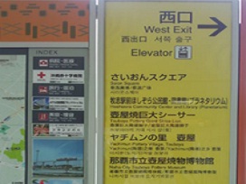 ① 駅を出て右(西口)側へ進み、階段またはエレベーターで1Fへ下ります。