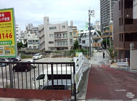 ③ 2つ目の路地を右折し、坂を下ると駐車場がございます。