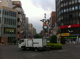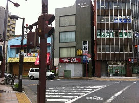 ① 「西口」を出て駅前ローターリーからまっすぐ「西口駅西口」交差点方向に進む。目印は「ドン・キホーテ」