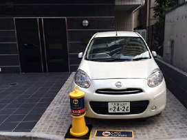 ④ 「AZEST西川口」マンションの前にカーシェアリング専用車枠。