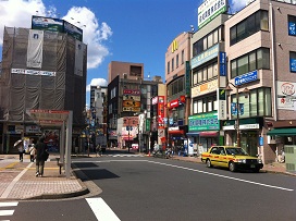 ① 北口を出て、正面ローターリーの右手にある道に入ります。 |