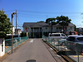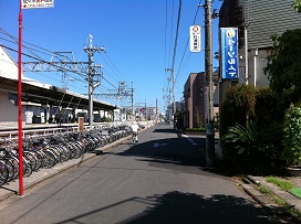 ① 南口階段を下りて左側へ線路沿いに進みます。