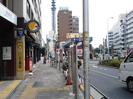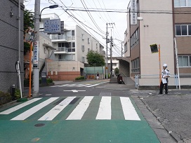 ② 2つ目の信号「合羽坂」を左折し100m位進んだ2つ目の角を左に曲がります。