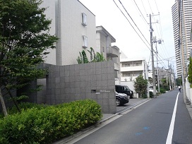 ③ 50メートルほど進んだ左側のマンション前の駐車場です。