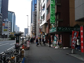 ① 西新宿駅の1番出口を出て、右へ(中野坂上方面)へ進みます。