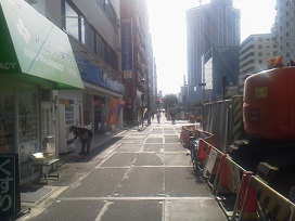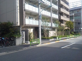 ① 大江戸線「勝どき駅」A3出口を出て、まっすぐ進みます。(「キュラーズ」「ファミリーマート」が見える方向)