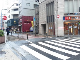 ① 新宿御苑前駅2番出口を出て、新宿通りを左側(四谷方面)へ5メートルほど進みます。