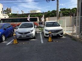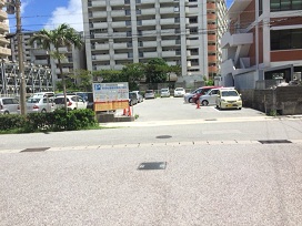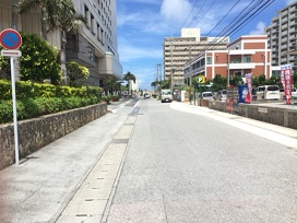 ① ロワジールホテル那覇から第一駐車場(海岸側)向きに進みます。