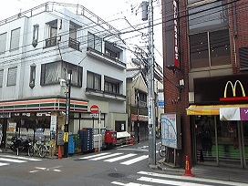 ① 改札を出て右手「マクドナルド」「セブンイレブン」の間を入ります。
