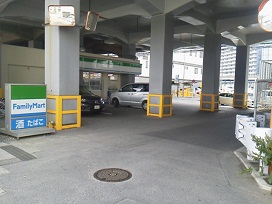 ② つきあたりのファミリーマートを右に曲がり、すぐ左へさらに高架下を進みます。