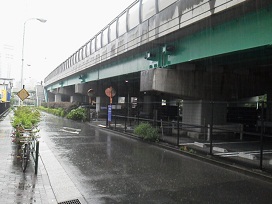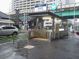 ① 有楽町線「月島駅」7番出口後方の交差点を左に曲がります。