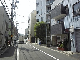 ② 丸八通り(都道476号)の信号を渡り、しばらく直進します。