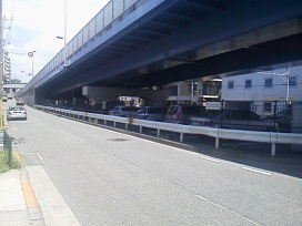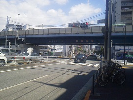 ② 正面に陸橋が見えますので、「南千束交差点」を左へ曲がります。
