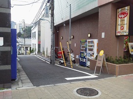 ③ 1つ目の路地を左に曲がり、約70メートル進むと右手に駐車場がございます。