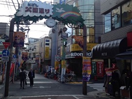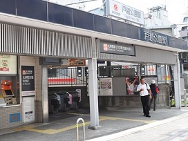 ① 東急大井町線「戸越公園駅」南口を出て、左へ進みます。(北口は左へ進み、踏切渡る。) |