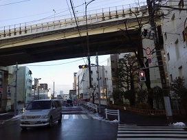 ② 450メートル程直進。首都高の高架下を潜り、すぐ右に曲がります。 |