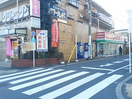 ① 「平和台駅」2番出口を出て、右側へ50メートル程直進。T字路を右に曲がります。(角にメガネ店)