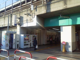 ① 京成本線「千住大橋駅」改札を出て右へ。ロータリー前を高架沿いに右へ進み、駅前交差点を左へ曲がります。