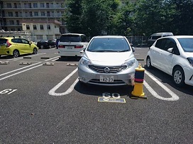 ③ 「ジョナサン」右脇の細い路地を進むと、左側に駐車場がございます。(路地の途中に利用者用出入口があります。)