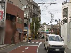 ② 山手通りの高架を潜り、左側1つ目の角を曲がります。(一方通行の通りへ)