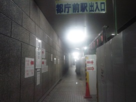 ② 「議事堂通り」下の通路を右側(甲州街道方面)へ進みます。