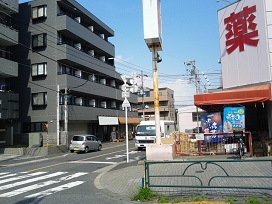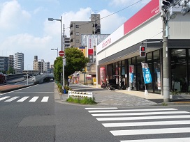 ① 「葛西駅」北口を出て、駅前の信号を渡り「環七通り」を横断。左側(一之江方面)へ進みます。