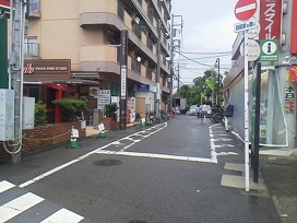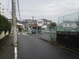 ① 「西馬込駅」南口を出てすぐの角を右へ曲がり、1つ目の角を右に曲がります。