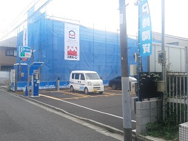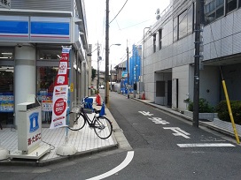 ③ 50メートル程直進。T字路(角にコンビニ)を左に曲がった右側に駐車場がございます。