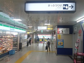 ① 「青砥駅」改札を出て、左側(「高砂駅」方面)へ進みます。