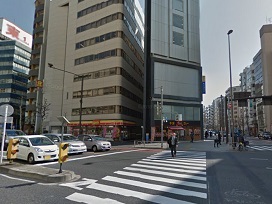 ② 出口背面にある信号を渡り、「靖国通り」を横断します。