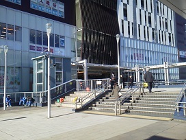 ① 「戸塚駅」橋上改札を出て、西口方面へ進みます。