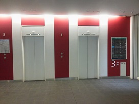 ③ エレベーターで屋上まで上がります。