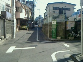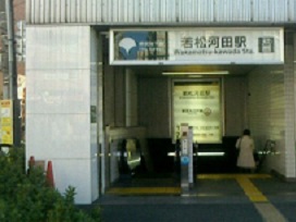 ① 都営大江戸線「若松河田駅」河田口を出て、前面道路を左側に進みます。