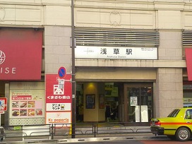 ① 東武伊勢崎線「浅草駅」正面口東側を出て、「江戸通り」沿いに北へ直進。
