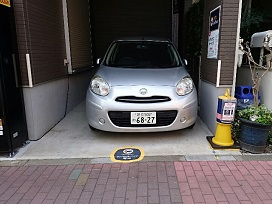 ③ 170m程進んだ突き当り、右斜め前方の一軒家の駐車スペースにステーションがございます。