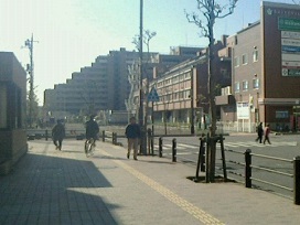 ② バス乗り場を越えると突き当たりますので、線路沿いに進んでください。