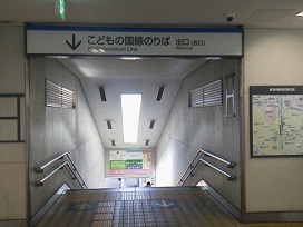 ① JR横浜線、東急田園都市線・こどもの国線「長津田」駅西口を出て階段を下ります。