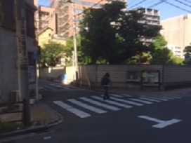 ① 「日暮里駅」東口を出て右折。交差点を渡り、そのまま線路に沿って直進します。