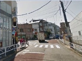 ① 洗足駅を右に出て、線路沿いに進みます。