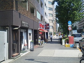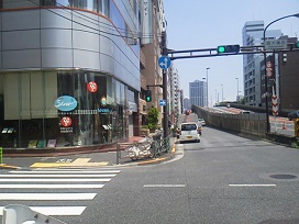 ② 「佃大橋西交差点」側道を進み、1つ目の路地を左へ曲がります。