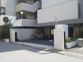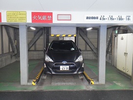③ さらに1つ目の路地を右に曲がると、右側に機械式駐車場がございます。