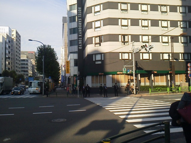 ① 「八丁堀」A4出口を背にして直進。「八丁堀交差点」の信号を渡り、右折します。