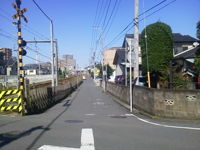 ② 突き当りを左折、踏切手前を右折し、線路沿いを進みます。